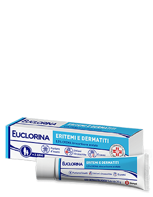 Euclorina® Eritemi e Dermatiti è indicato per alleviare i disturbi cutanei e fornire un sollievo adeguato in caso di eczemi, punture di insetti, eritemi, ustioni circoscritte o prurito.